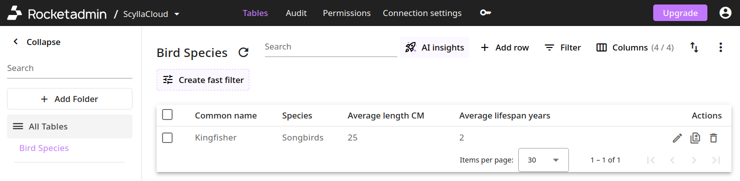 This user guide outlines the procedure for establishing Rocketadmin connection to a ScyllaDB cloud database.
