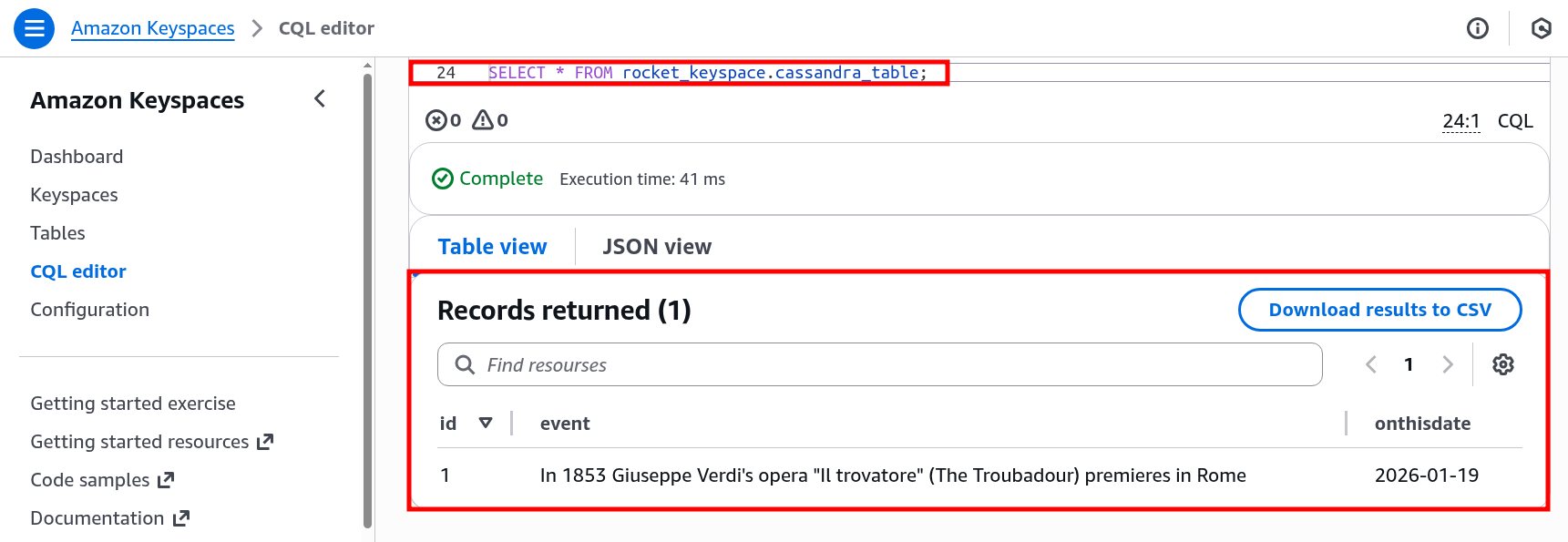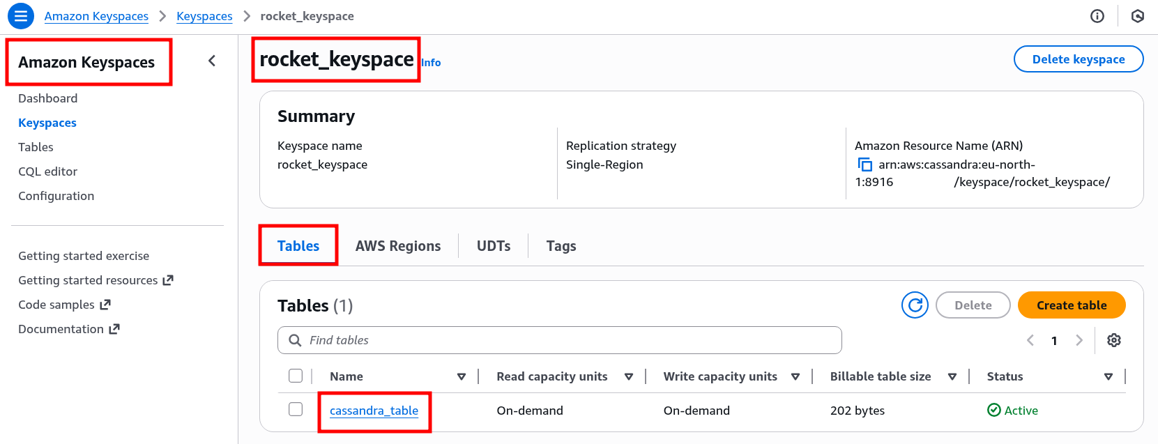 2. Navigate to the Amazon Keyspaces Dashboard.
