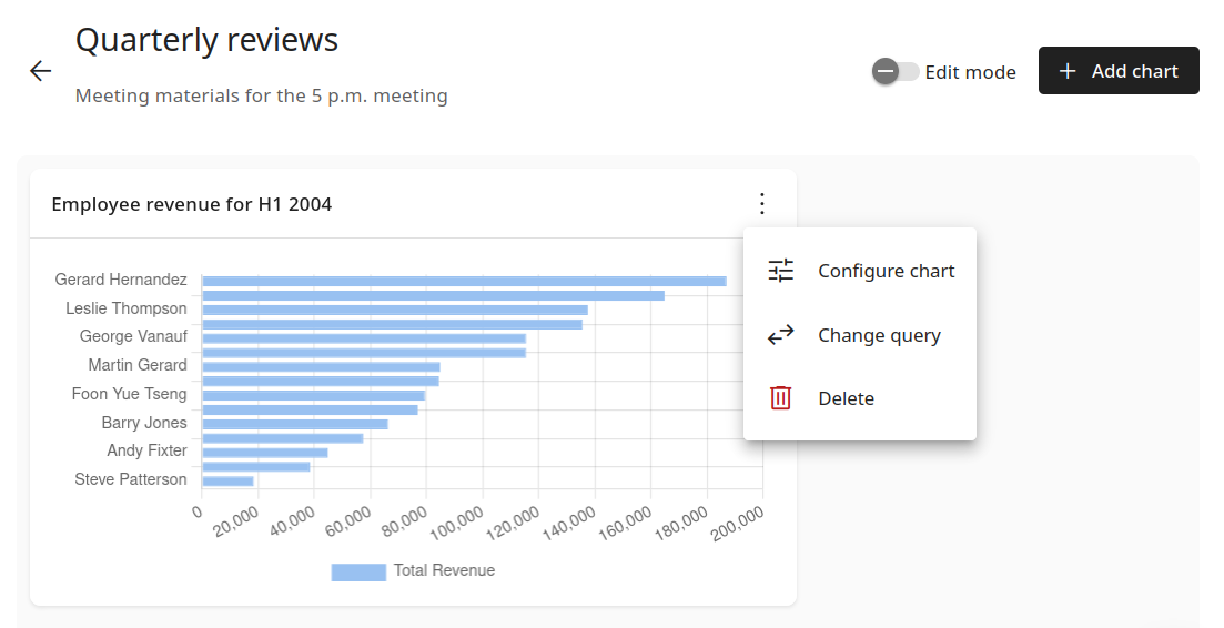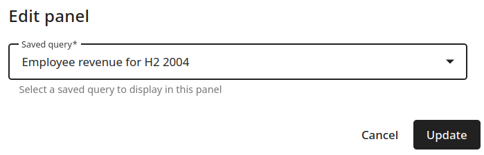 From the Dashboards menu, click the dashboard for which you want to change a panel.