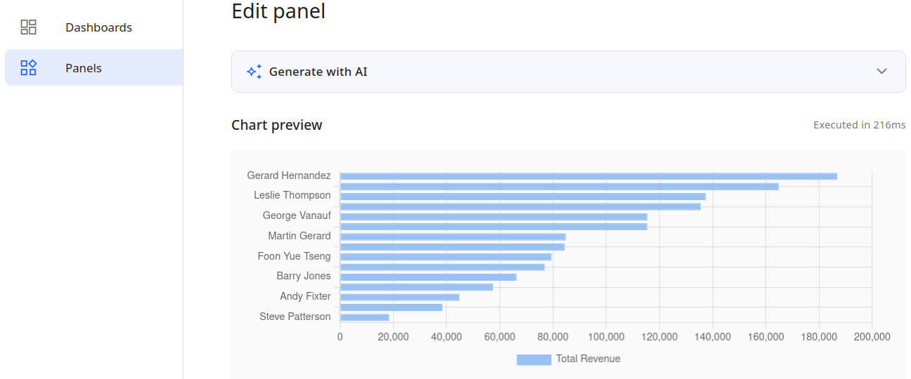 The panel will be updated with the new configuration. To review the changes, navigate back to the Dashboards menu and open your dashboard.