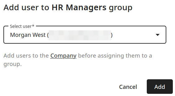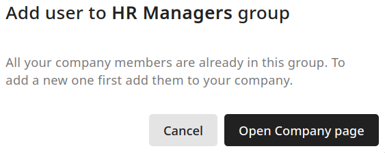 If there are no available Company members to select from, click the Open Company page button to add new users to your company before assigning them to the group: